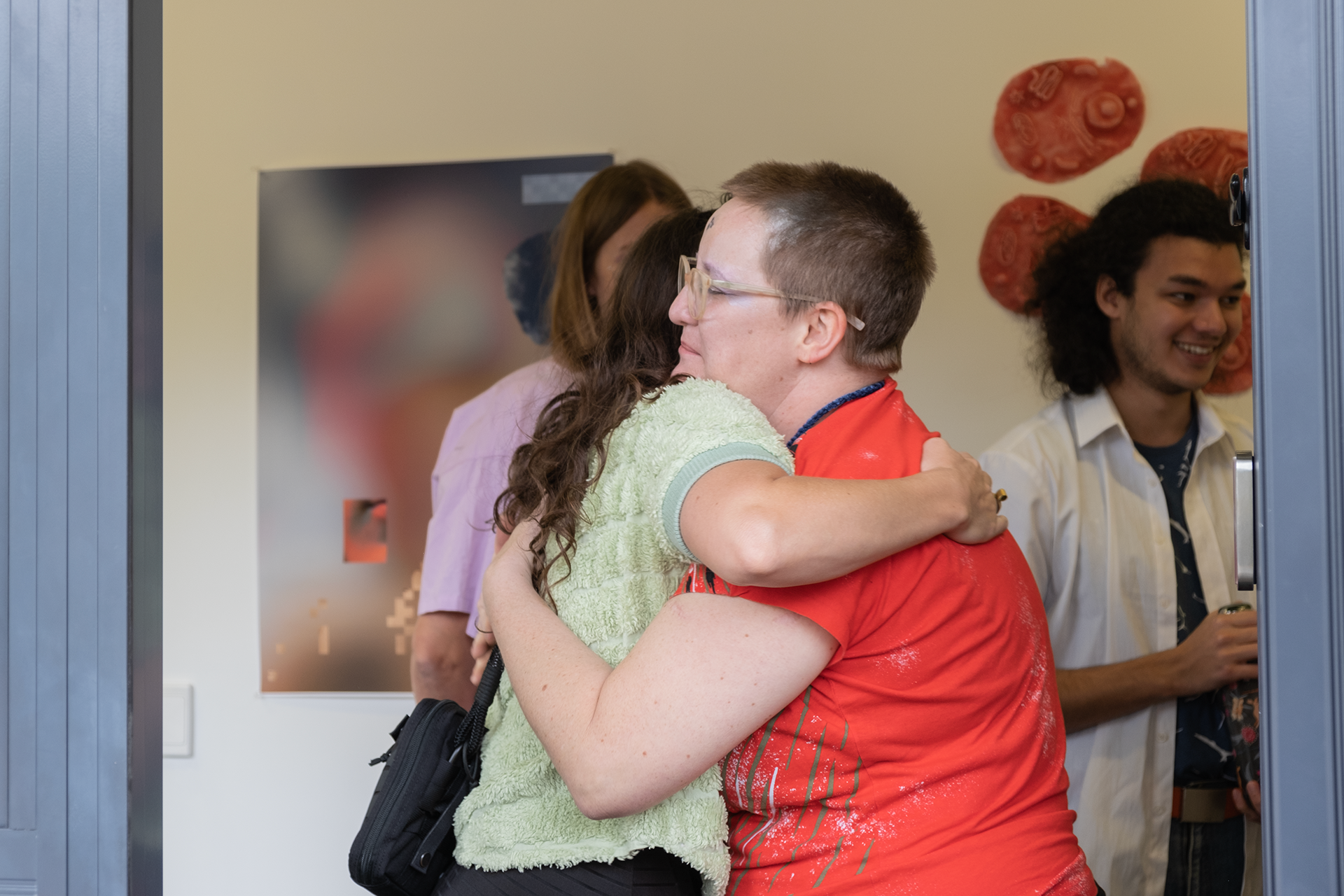 Meg Stoios currently lives and works on the lands of the Kombumerri families in South East Queensland (Gold Coast), bordering Bundjalung Country (the Northern Rivers). Stoios is invested in complex narrative and visual language structures in painting and sculpture and has a highly technical approach to composition and mark making. The use of life models is integral to their work. Using both figurative and abstract imagery, Stoios unpacks personal and shared traumas, revealing the psycho-scapes of interpersonal relationships.